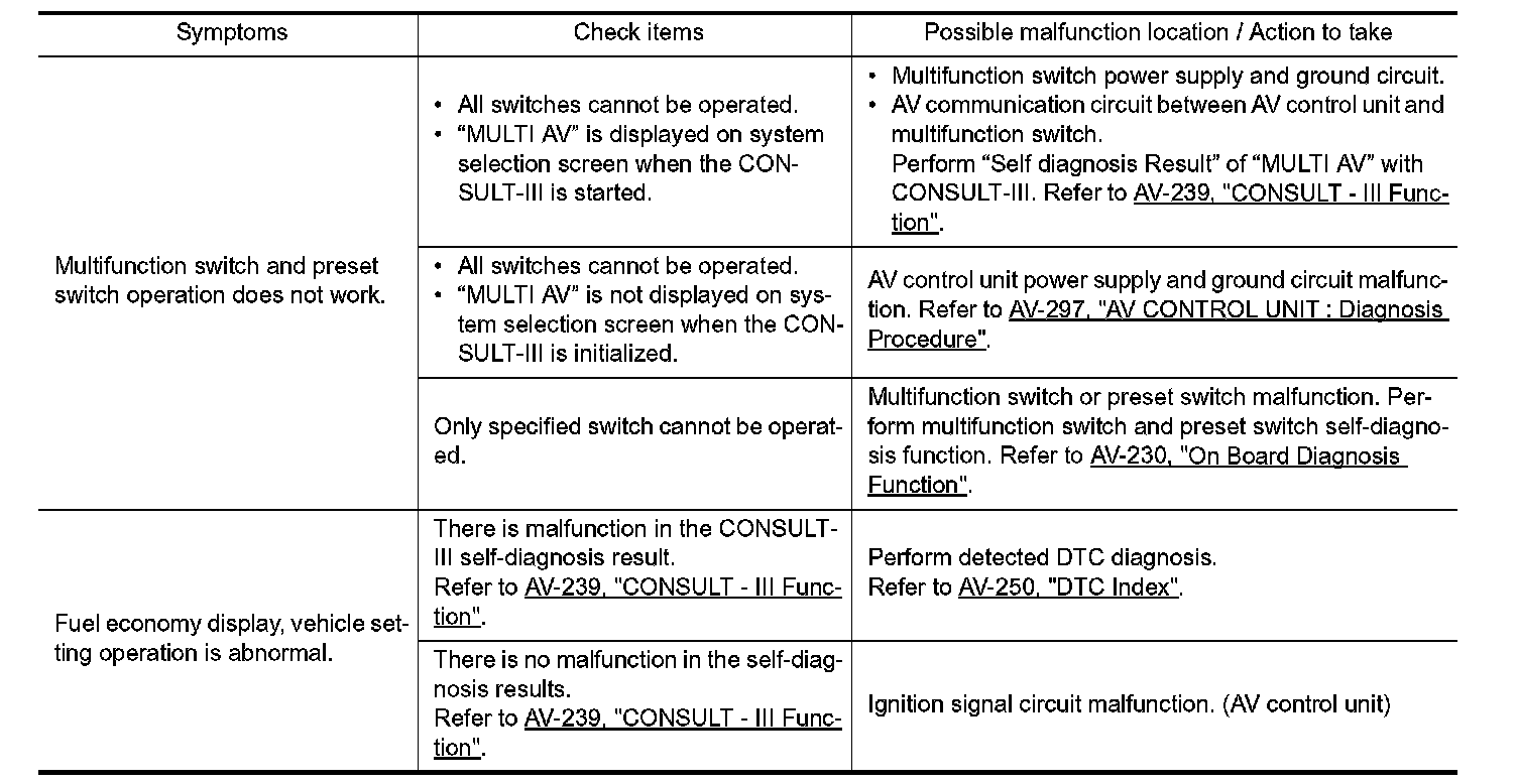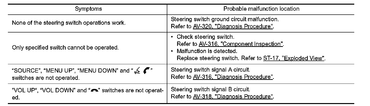 Symptom Table - Related To Steering Switch: