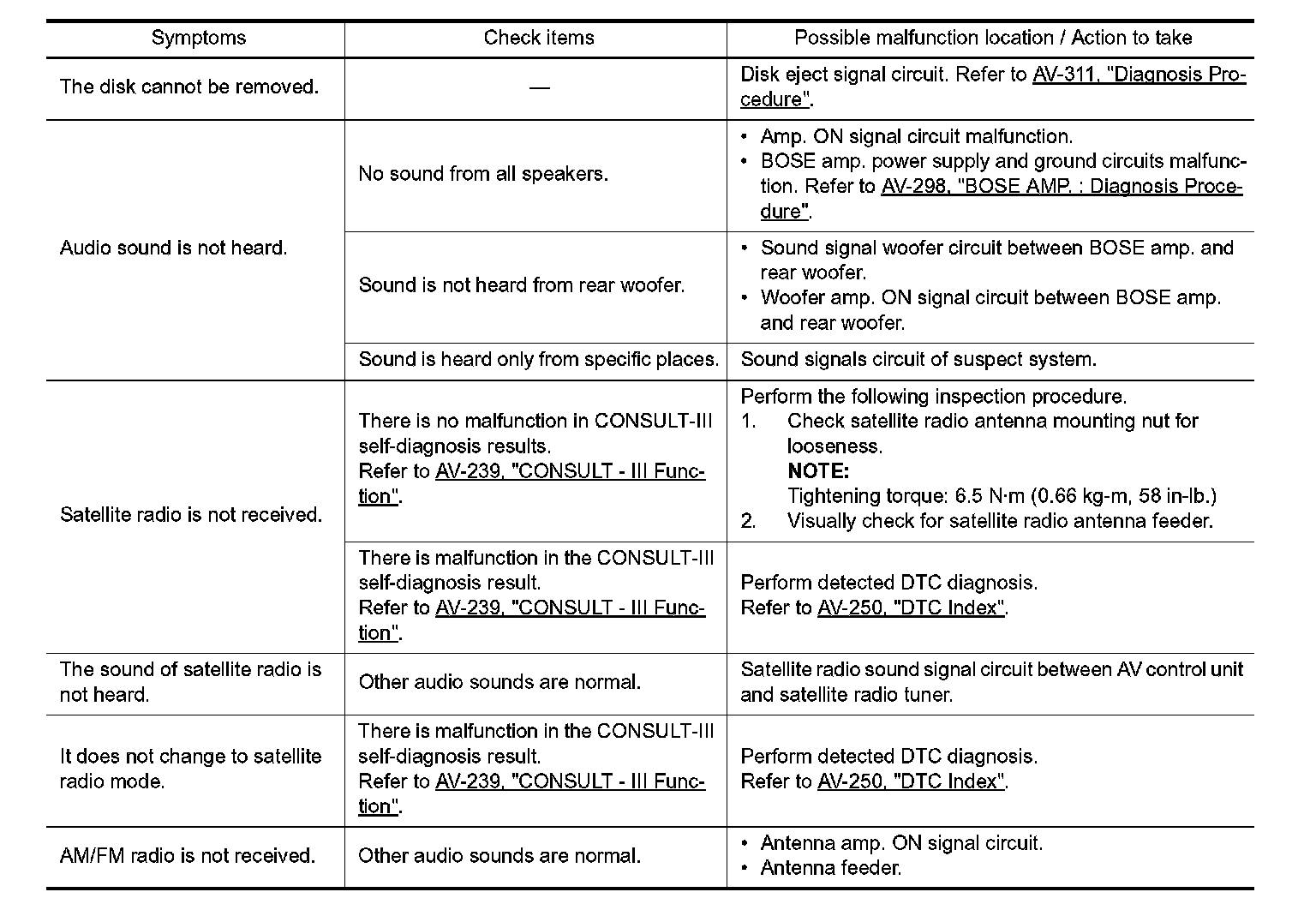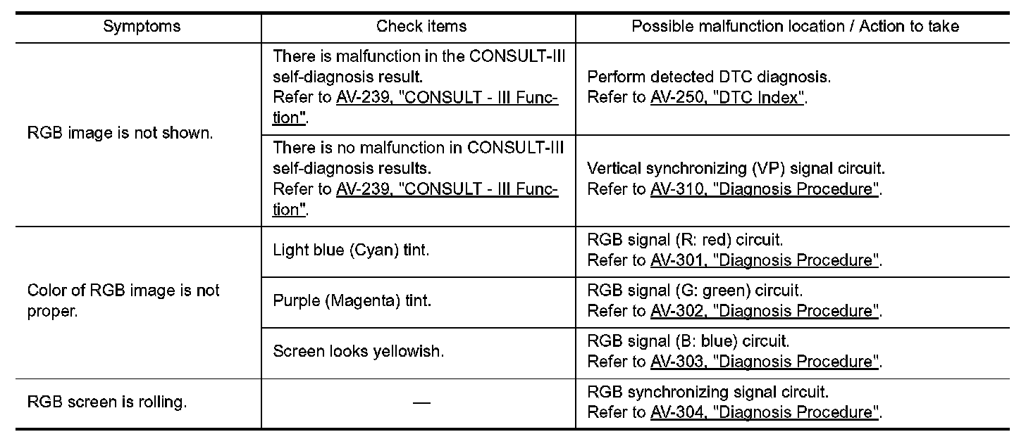 If cellular phone and AV control unit cannot be connected with Bluetooth communication, following procedure allows the technician to judge which device has malfunction.