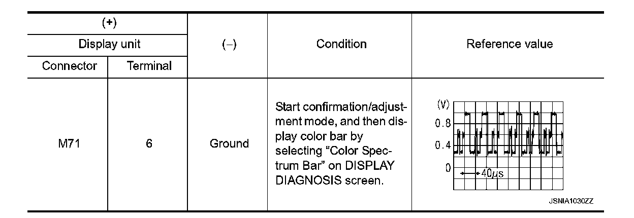 3. Check continuity between display unit harness connector and AV control unit harness connector.