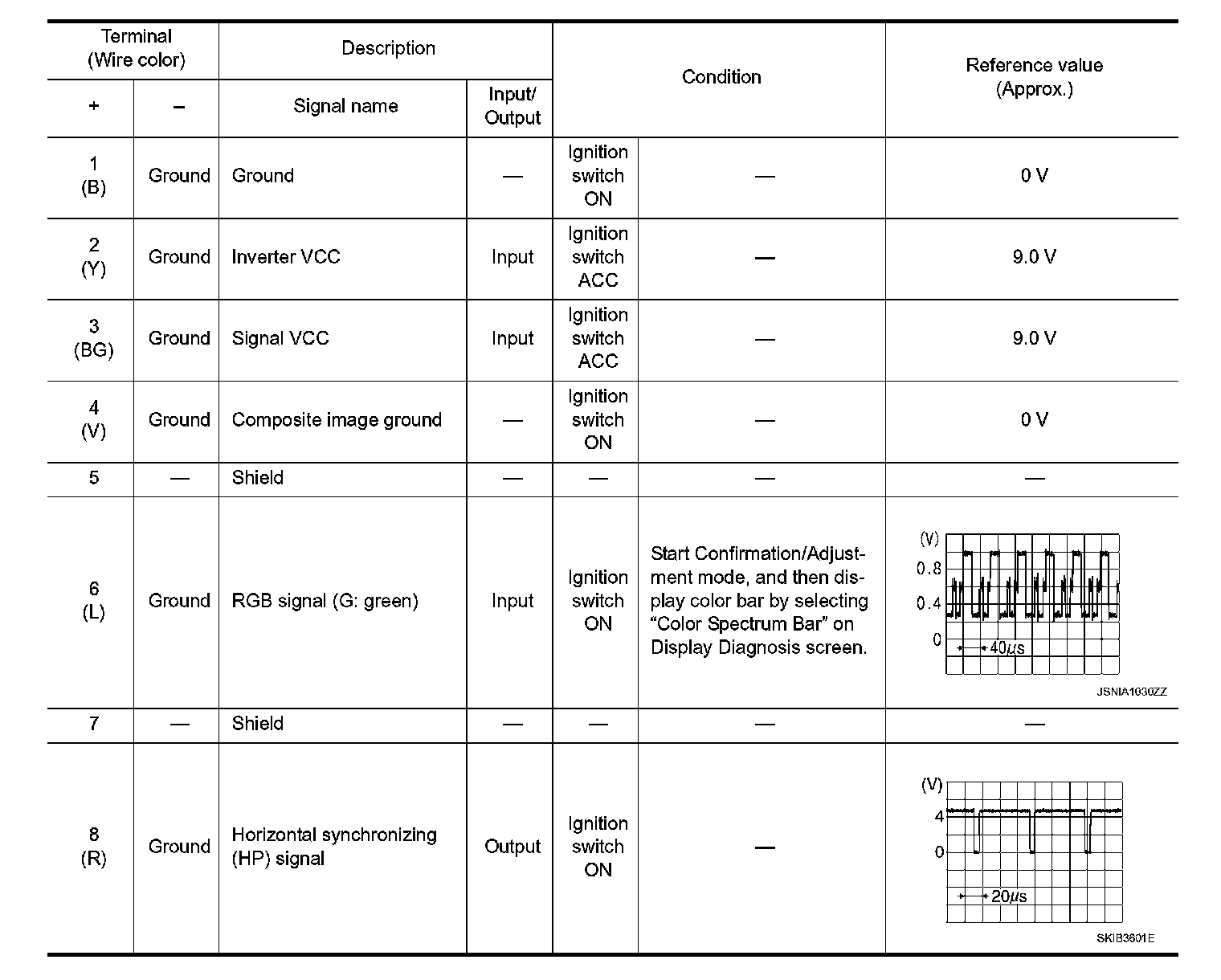 Pinout Values and Diagnostic Parameters