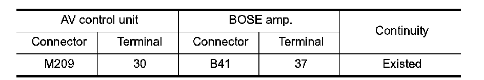 3. Check continuity between BOSE amp. harness connector and AV control unit harness connector.
