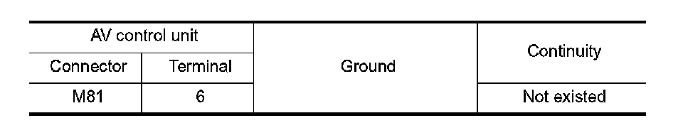 2. Check continuity between AV control unit harness connector and spiral cable harness connector.