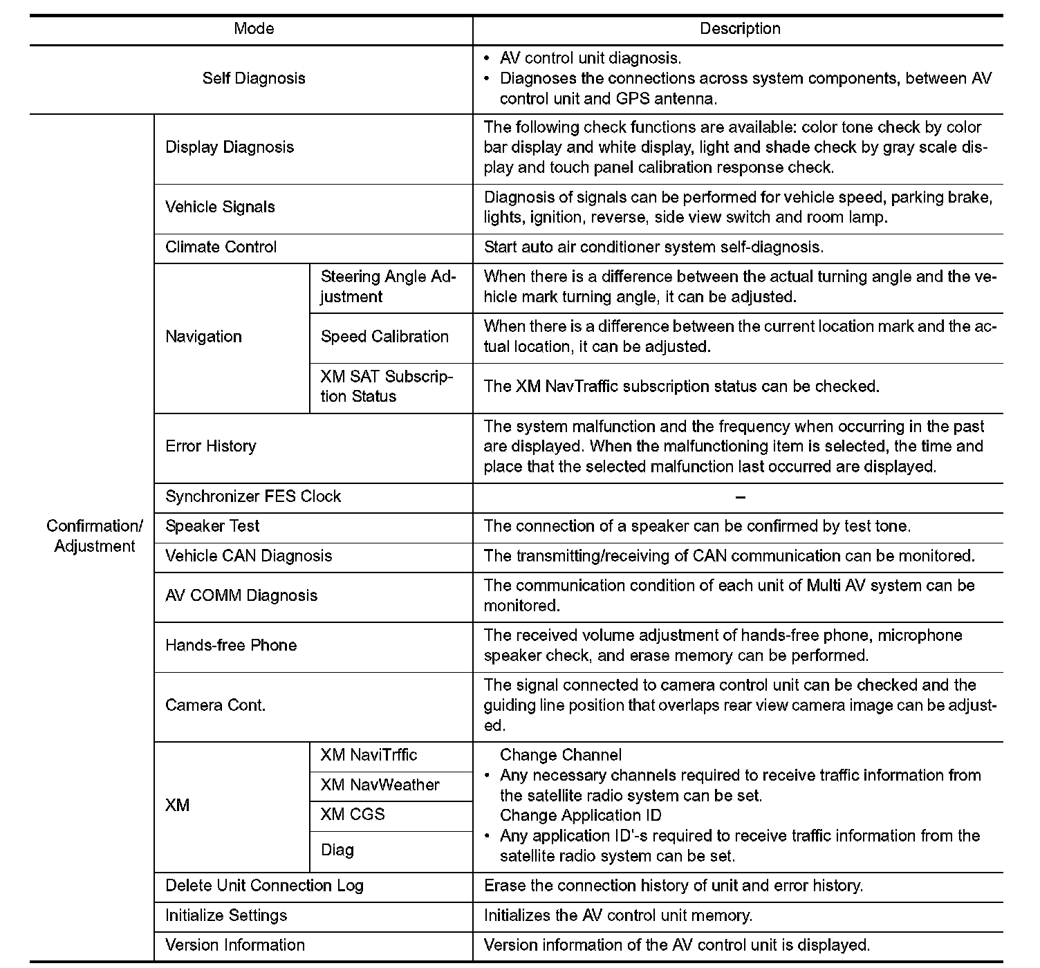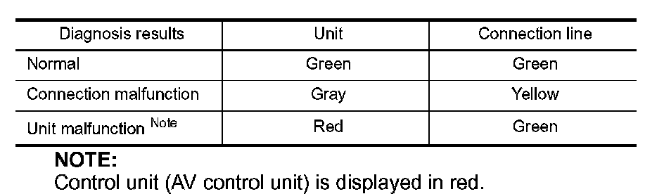 - The self-diagnosis mode allows the technician to diagnose the connection in the communication line between AV control unit and each unit and the internal operation of the AV control unit.