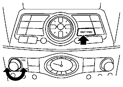 3. While pressing the "SETTING" button, turn the volume control dial clockwise or counterclockwise for 40 clicks or more. (When the self-diagnosis mode is started, a short beep will be heard.)