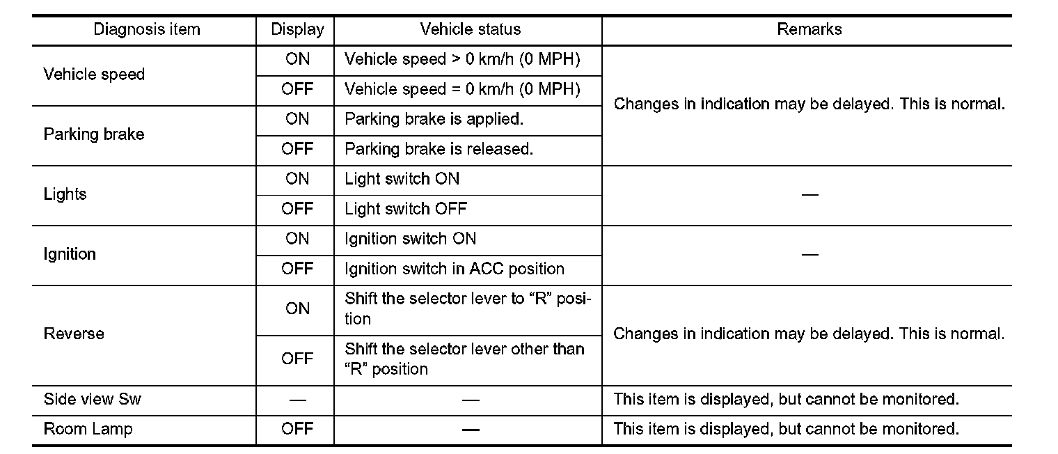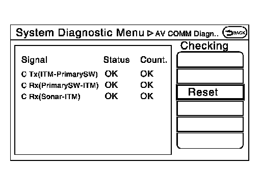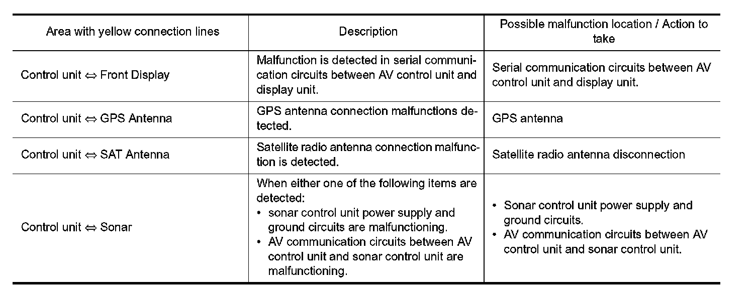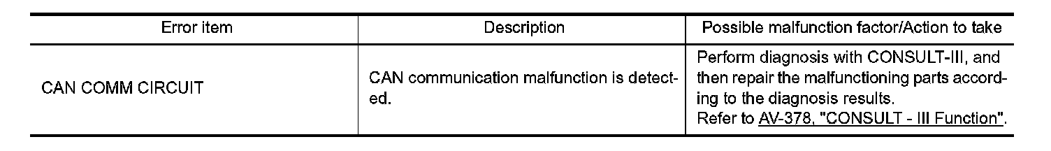 - Because the start condition of diagnosis function is a switch operation, the on board diagnosis function cannot be started up if any malfunction is detected in the communication circuit between AV control unit and multifunction switch.