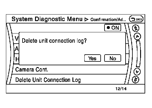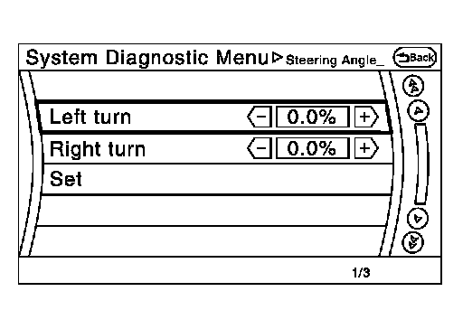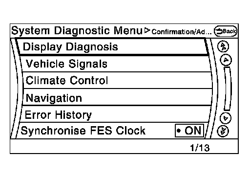 2. Select each switch on the "Confirmation/Adjustment Mode" screen to display the relevant trouble diagnosis screen. Press the "Back" switch to return to the initial Confirmation/Adjustment