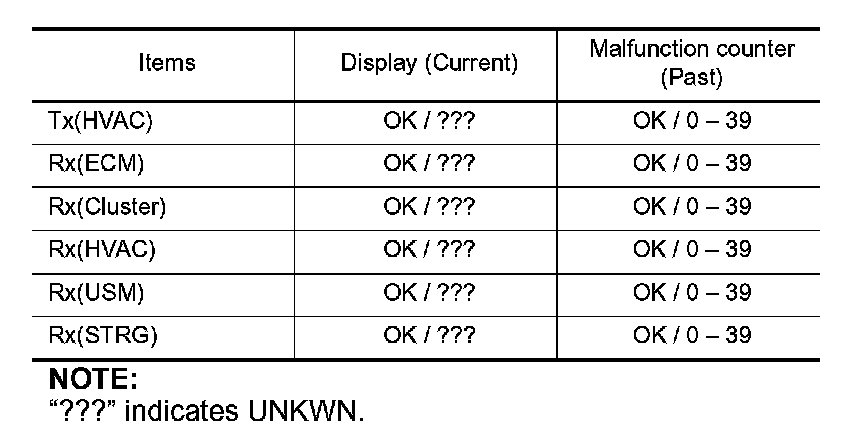 - The error counter displays "OK" if any malfunction was not detected in the past and displays "0" if a malfunction is detected. It increases by 1 if the condition is normal at the next ignition switch