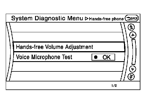 The hands-free phone reception volume adjustment and microphone and speaker test functions are also available.