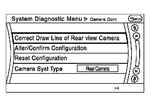 - Use this mode to adjust the guide line display position of the rear view monitor if necessary after removing the rear view monitor camera.