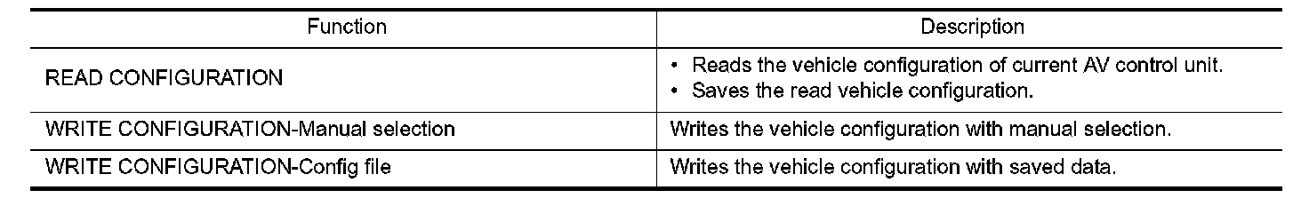 CONSULT-III performs the following functions via the communication with the AV control unit.