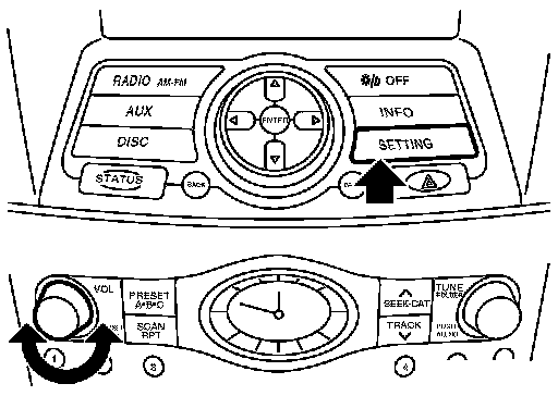 3. While pressing the "SETTING" button, turn the volume control dial clockwise or counterclockwise for 40 clicks or more. (When the self-diagnosis mode is started, a short beep will be heard.)