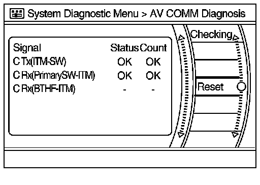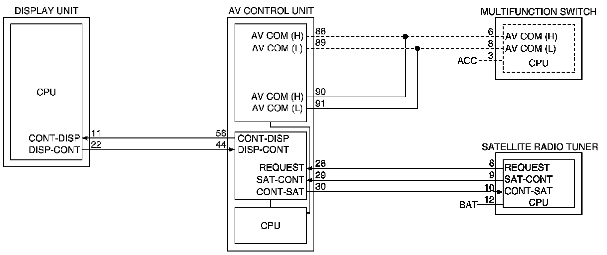 - The AV control unit diagnosis function starts up with multifunction switch operation and the AV control unit performs a diagnosis for each unit in the system during the on board diagnosis.