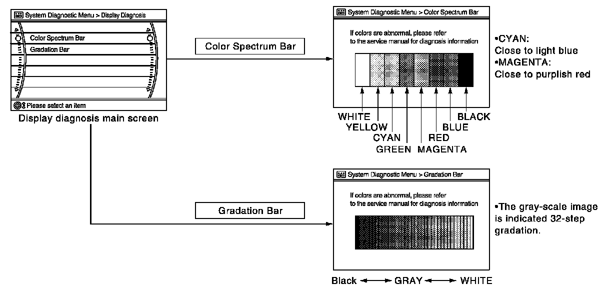 - Self-diagnosis mode performs the AV control unit diagnosis and the connection diagnosis between each of the units that make up the system, and it indicates the results to the display.