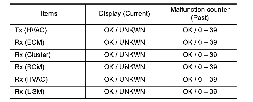 - The error counter displays "OK" if any malfunction was not detected in the past and displays "0" if a malfunction is detected. It increases by 1 if the condition is normal at the next ignition switch