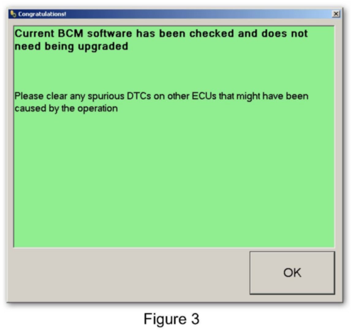 When BCM reprogramming is complete the screen in Figure 5 displays and the hazard flashers will start flashing.