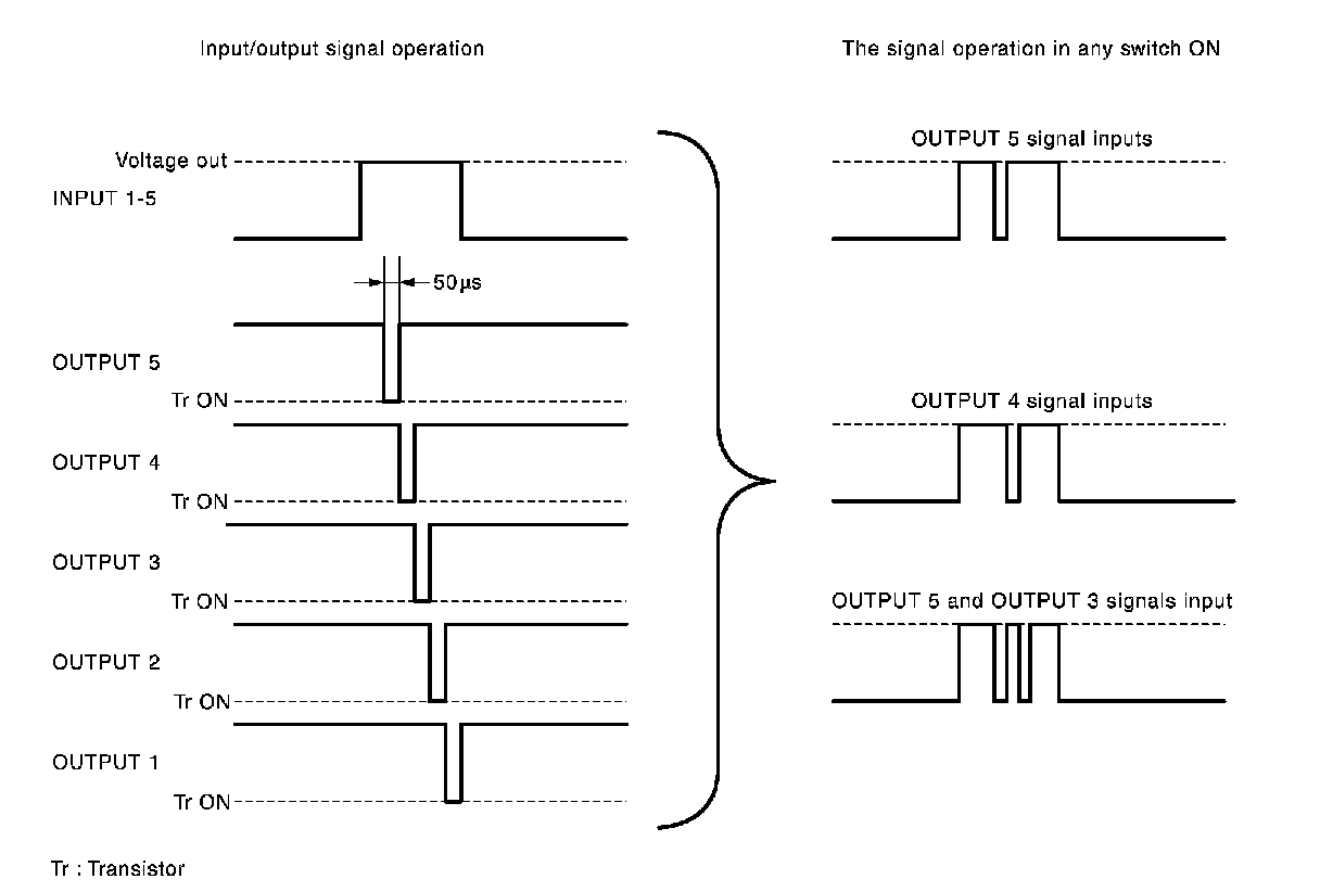 It operates the transistor on OUTPUT side in the following order: OUTPUT 5 to 4 to 3 to 2 to 1.