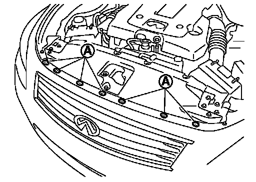 7. Remove fender protector (front) mounting bolts and clips, and then remove screw (A) of fixing bumper fascia left and right side.