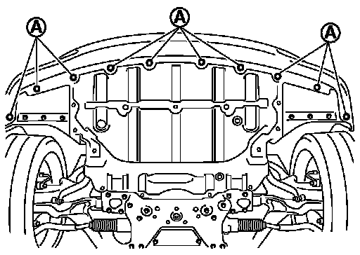 6. Remove bolts (A) of fixing engine lower cover and front fender protector.