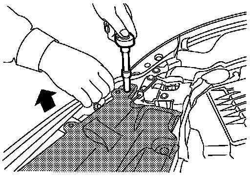 12. Remove the grommet on the dashboard, and pull the hood lock control cable toward the passenger compartment.