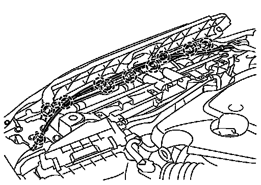 - Disconnect the harness clips and hood lock control cable clips on radiator core support.