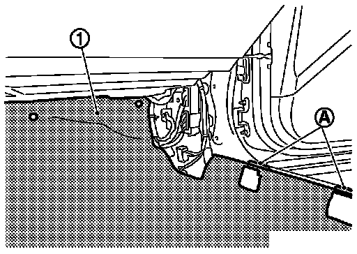 15. Remove floor trim from floor trim fixing clips (A) and remove floor carpet (1).