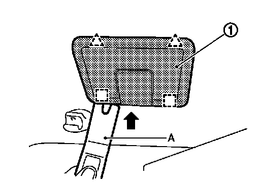 3. Remove front roof finisher fixing metal clips and pawls with a remover tool (A), and then remove front roof finisher (1).