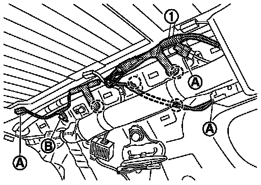 9. Disconnect antenna feeder connectors (A) of antenna amplifier and sub-antenna feeder (1) after removing rear pillar finisher