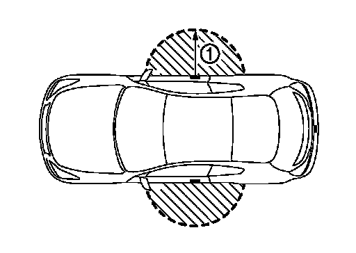 The outside key antenna detection area of door lock/unlock function is in the range of approximately 80 cm (31.50 in) surrounding the driver, passenger door handles (1) . However, this operating range depends on the ambient conditions.