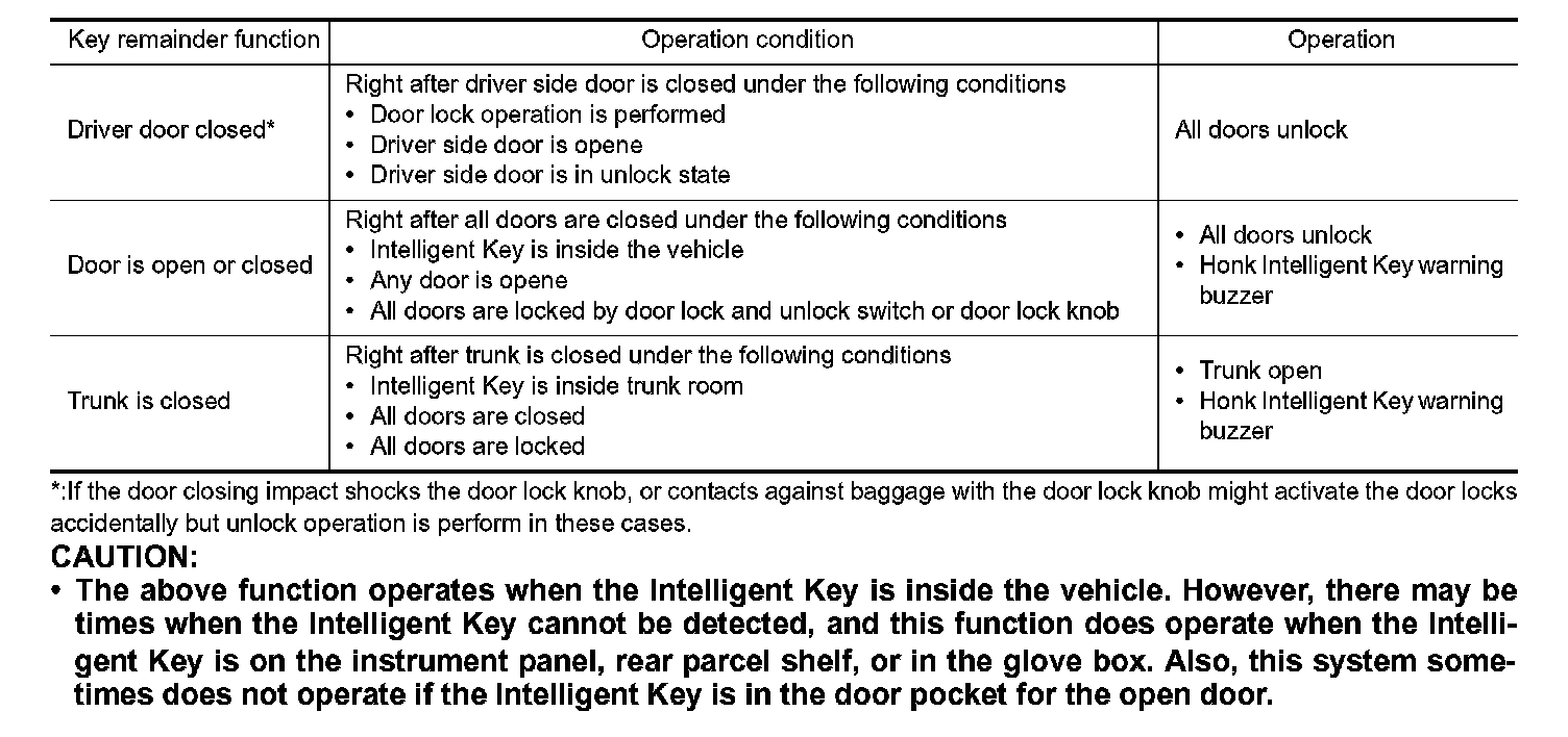 Key reminder is the function that prevents the key from being left in the vehicle.
