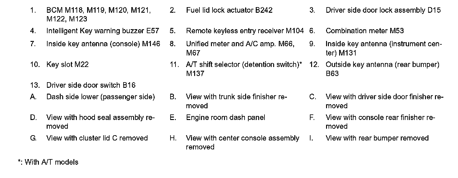 KEY REMINDER FUNCTION : Component Parts Location