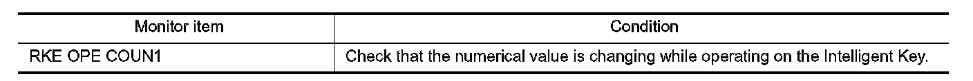 Check ("RKE OPE COUN1") in Data Monitor mode using CONSULT-III.