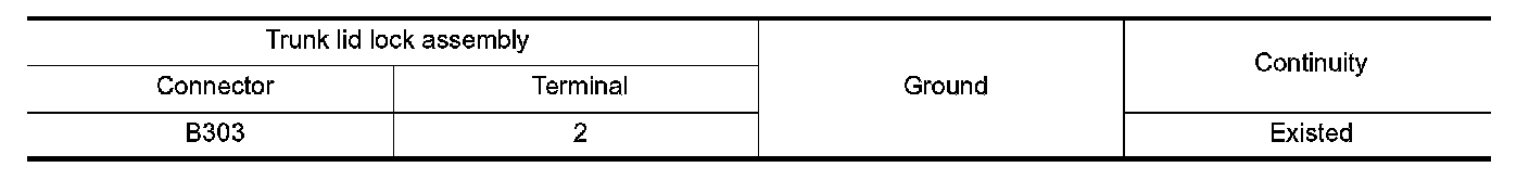 Check continuity between trunk lid lock assembly harness connector and ground.