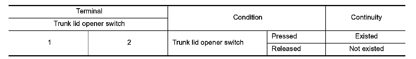 NO - Replace trunk lid opener switch. Removal and Installation.