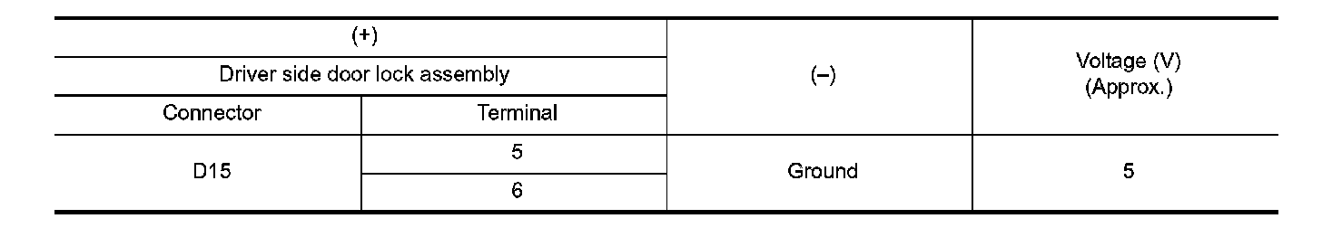 3. Check voltage between driver side door lock assembly harness connector and ground.