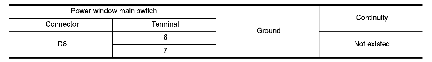 3. Check continuity between power window main switch harness connector and ground.