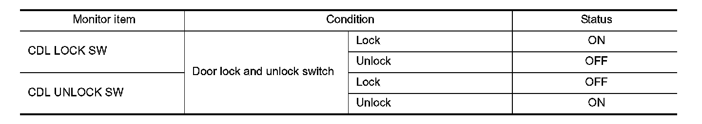 Check ("CDL LOCK SW ", "CDL UNLOCK SW") in "Data Monitor" mode using CONSULT-III.