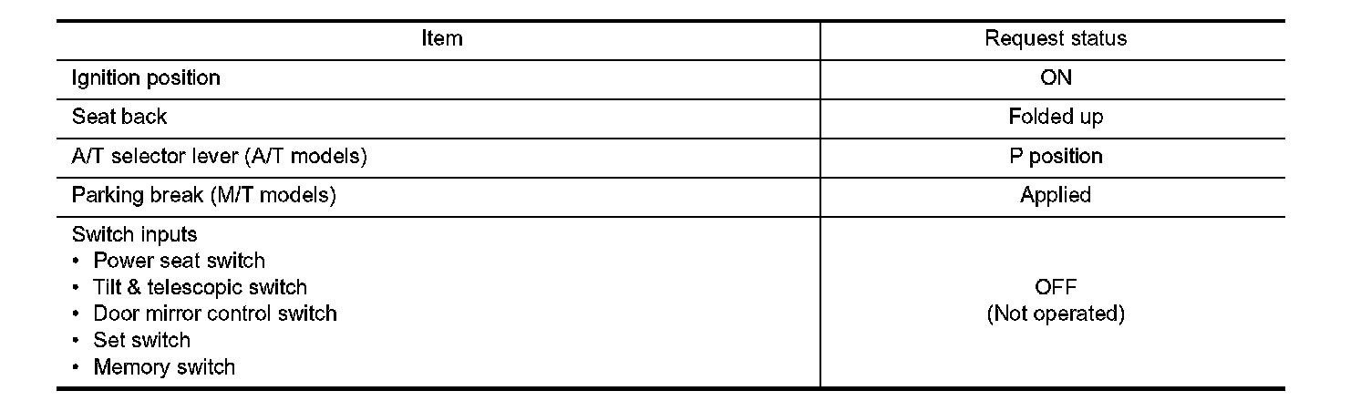 Satisfy all of the following items. The memory function is not performed if these items are not satisfied.