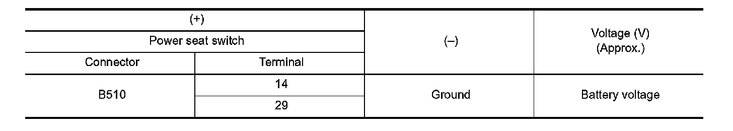 4. Check voltage between power seat switch harness connector and ground.