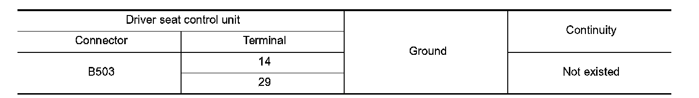 4. Check continuity between driver seat control unit harness connector and ground.
