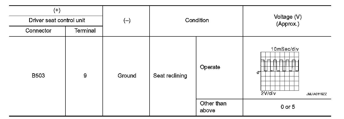 2. Check voltage signal between driver seat control unit harness connector and ground with oscilloscope.