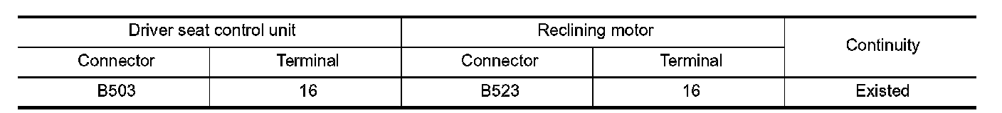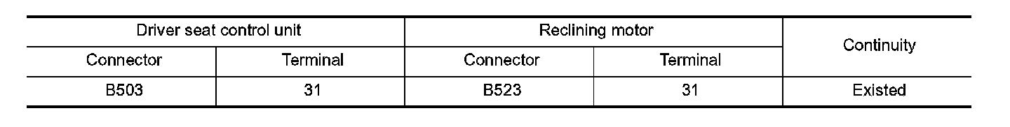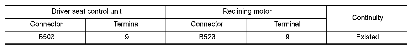 3. Check continuity between driver seat control unit harness connector and reclining motor harness connector.