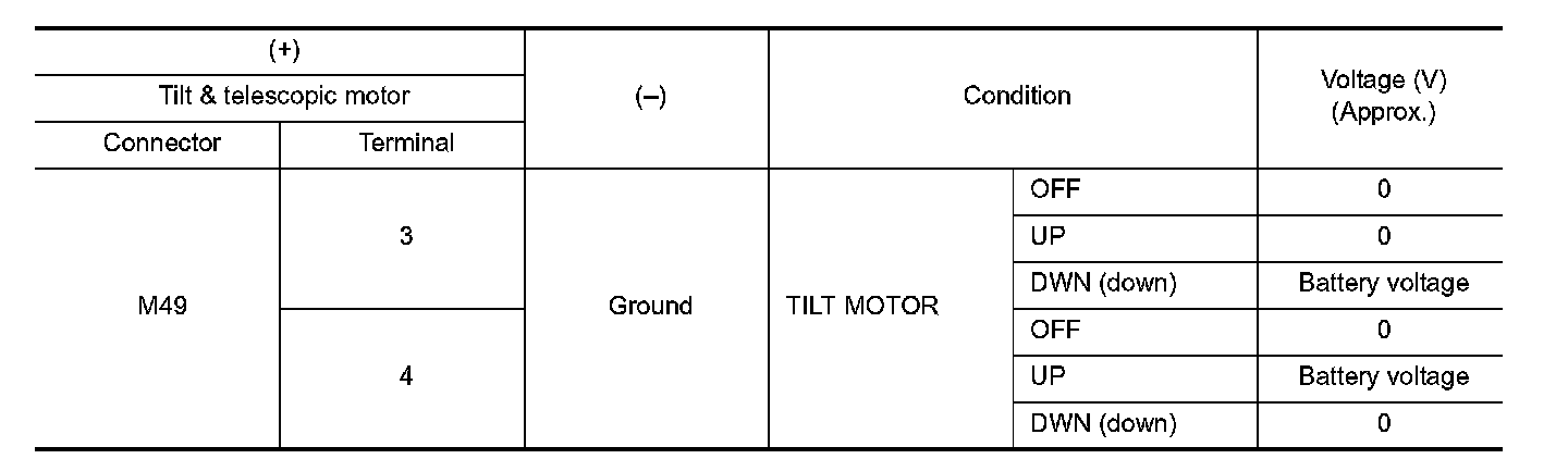 5. Check voltage between tilt & telescopic motor harness connector and ground.