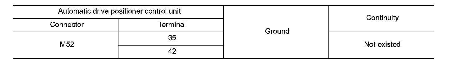 4. Check continuity between automatic drive positioner control unit harness connector and ground.