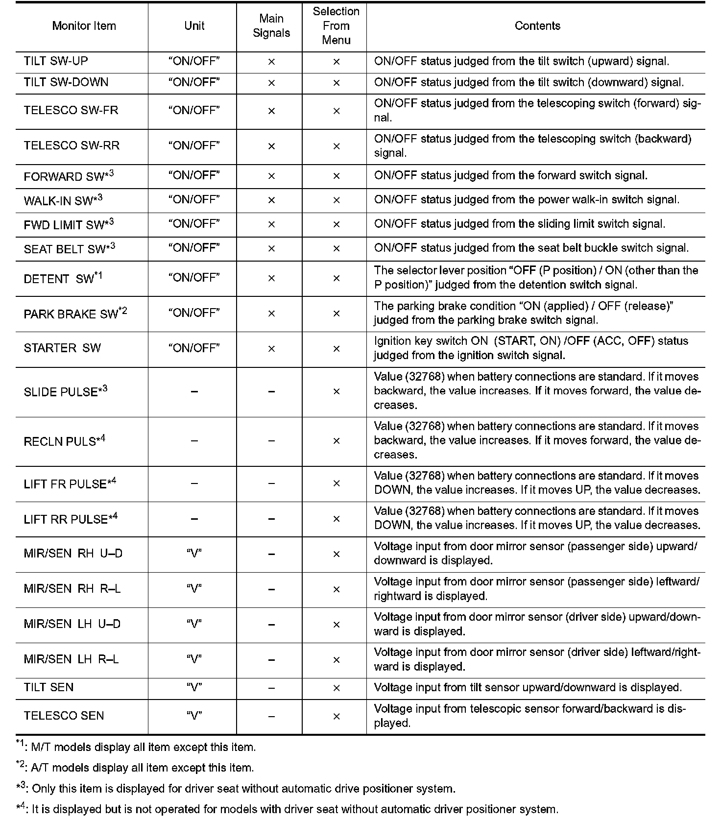 DIAGNOSIS SYSTEM (DRIVER SEAT C/U)