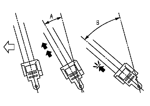 - The webbing cannot be pulled out when the angle (B) is 27 degrees or more.