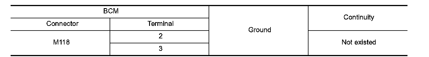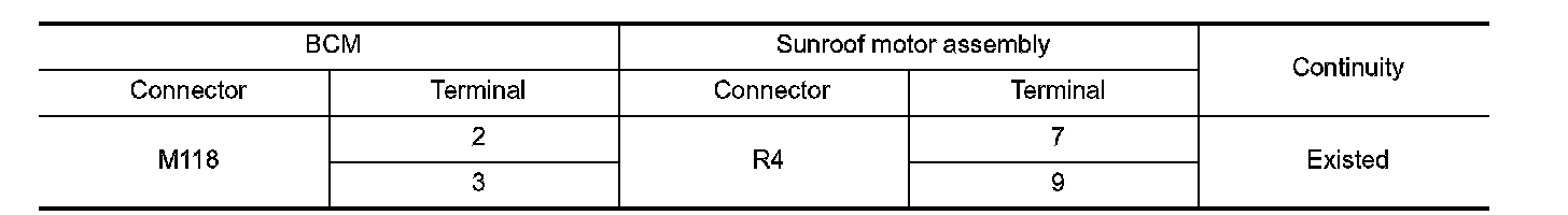 3. Check continuity between BCM harness connector and sunroof motor assembly harness connector.