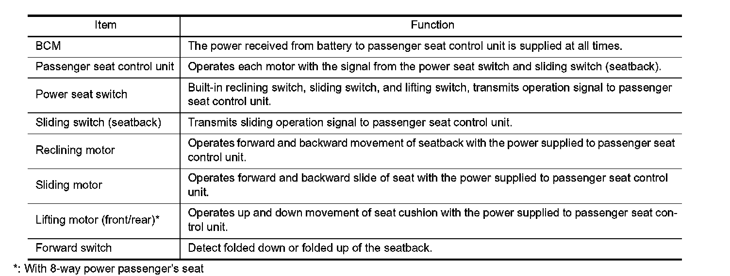 POWER SEAT FUNCTION : Component Description
