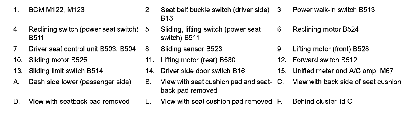 POWER SEAT FUNCTION : Component Parts Location