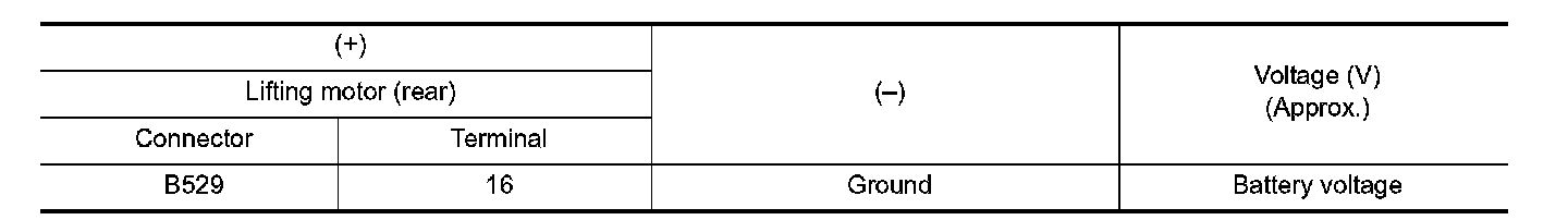 3. Check the voltage between lifting motor (rear) harness connector and ground.