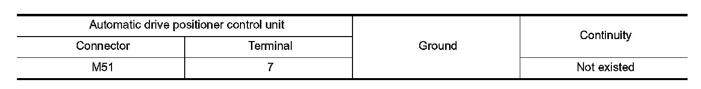 2. Check continuity between automatic drive positioner control unit harness connector and ground.